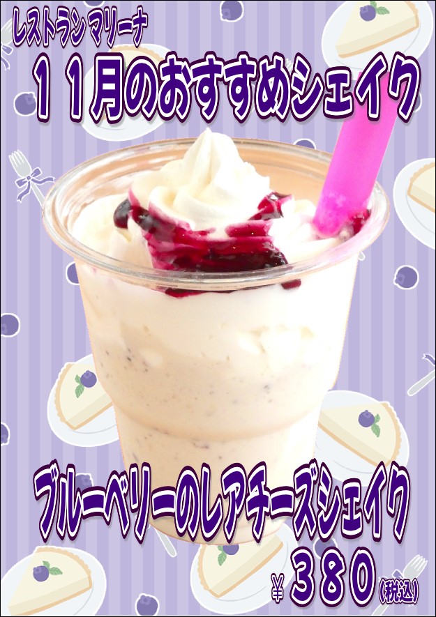 レストランMARINA 11月のおすすめシェイクのおしらせ
