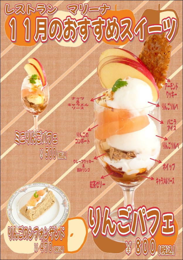 レストランMARINA 11月のおすすめスイーツのおしらせ